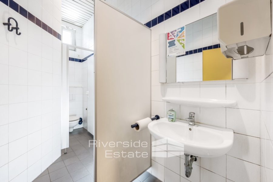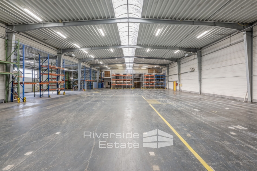 Die Halle verfügt über zwei LKW-Rampen sowie zwei ebenerdige Tore, was eine flexible und effiziente Andienung ermöglicht. Dank der Außenumfahrung für LKWs ist ein komfortables Rangieren ohne Wendemanöver möglich. Die Deckenhöhe beträgt zwischen 4,80 m und 6,15 m und bietet auch für hochregalbasierte Lagerlösungen optimale Voraussetzungen.