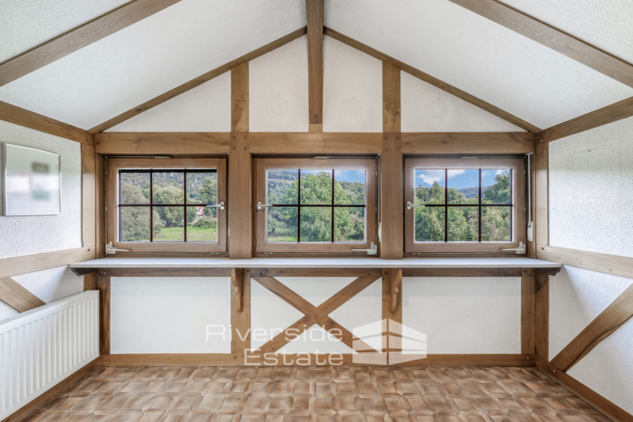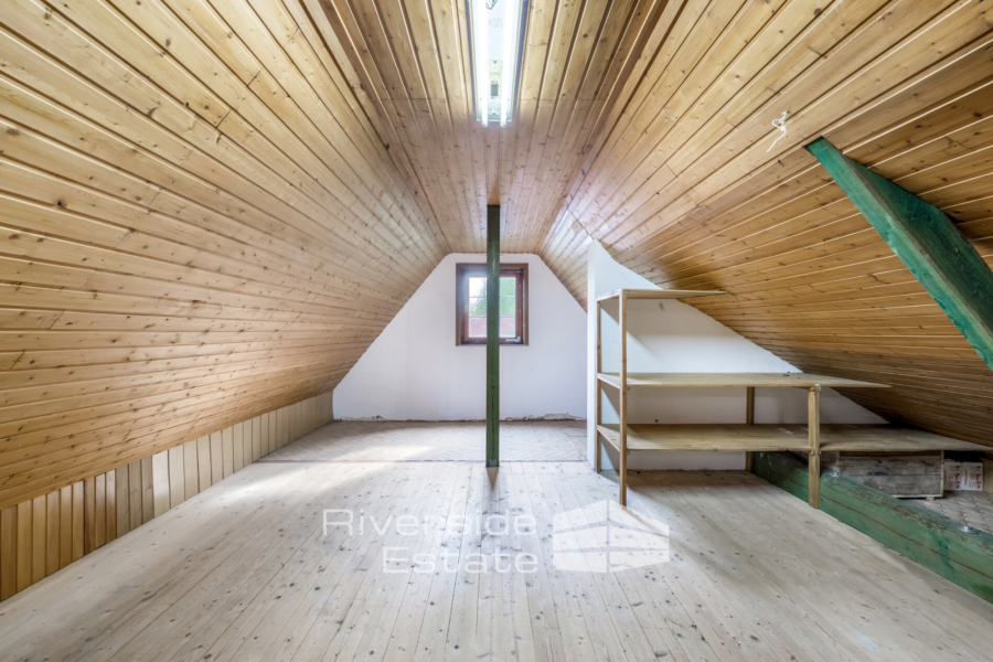 Das zweite Obergeschoss ist teilweise wohnlich ausgebaut, mit zwei großen Räumen. Hier besteht großes Potential für eine spätere Umnutzung oder Ausbau zu weiteren Wohnräumen, Büros oder Hobbyflächen.