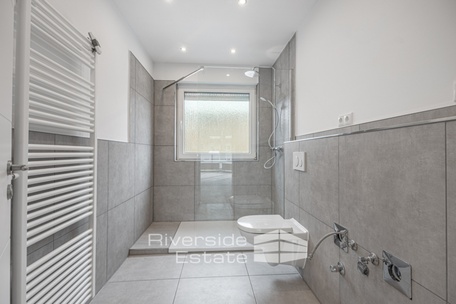 Das offene Wohn- und Essbereichskonzept mit großflächigen Fensterfronten sorgt für eine einladende Atmosphäre und lässt das Tageslicht in allen Räumen strömen. Der neue, helle Vinylboden verleiht dem gesamten Wohnbereich eine warme, moderne Note. Die drei Zimmer bieten genügend Raum für Familie, Gäste oder eine home-office-Nutzung. Das neue moderne Badezimmer mit großer, hochwertig gefliesten Dusche ist mit modernen Anschlüssen und hochwertigen Materialien ausgestattet. Die Elektrik-Anschlüsse wurden im Bad und Küche erneuert, neue Wasserleitungen verlegt und moderne Heizkörper installiert – alles auf dem neuesten technischen Stand.