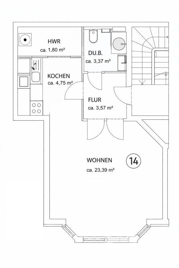 - ca. 36,88 m² Wohnfläche (genaue Flächenberechnung folgt)