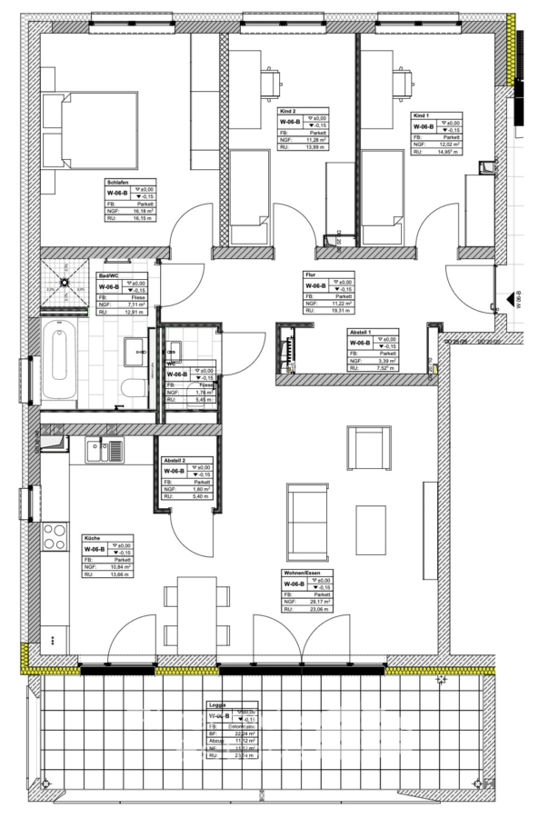 Für eine hochwertige Wohnatmosphäre sorgen durchdachte Grundrisse und eine erstklassige Ausstattung mit hochwertigem Parkett, Fliesen sowie modernen Sanitärobjekten. Zum Standard gehören selbstverständlich auch elektrische Rollläden und ein Keller für zusätzlichen Stauraum. Für maximalen Komfort und Barrierefreiheit gewährleistet ein Aufzug den zugänglichen Zugang zu allen Etagen. Das Gesamtkonzept wird durch eine großzügige Gartenanlage mit Gartenanteilen sowie eine Tiefgarage und weitere Stellplätze abgerundet, die eine optimale Infrastruktur für alle Bewohner gewährleisten.